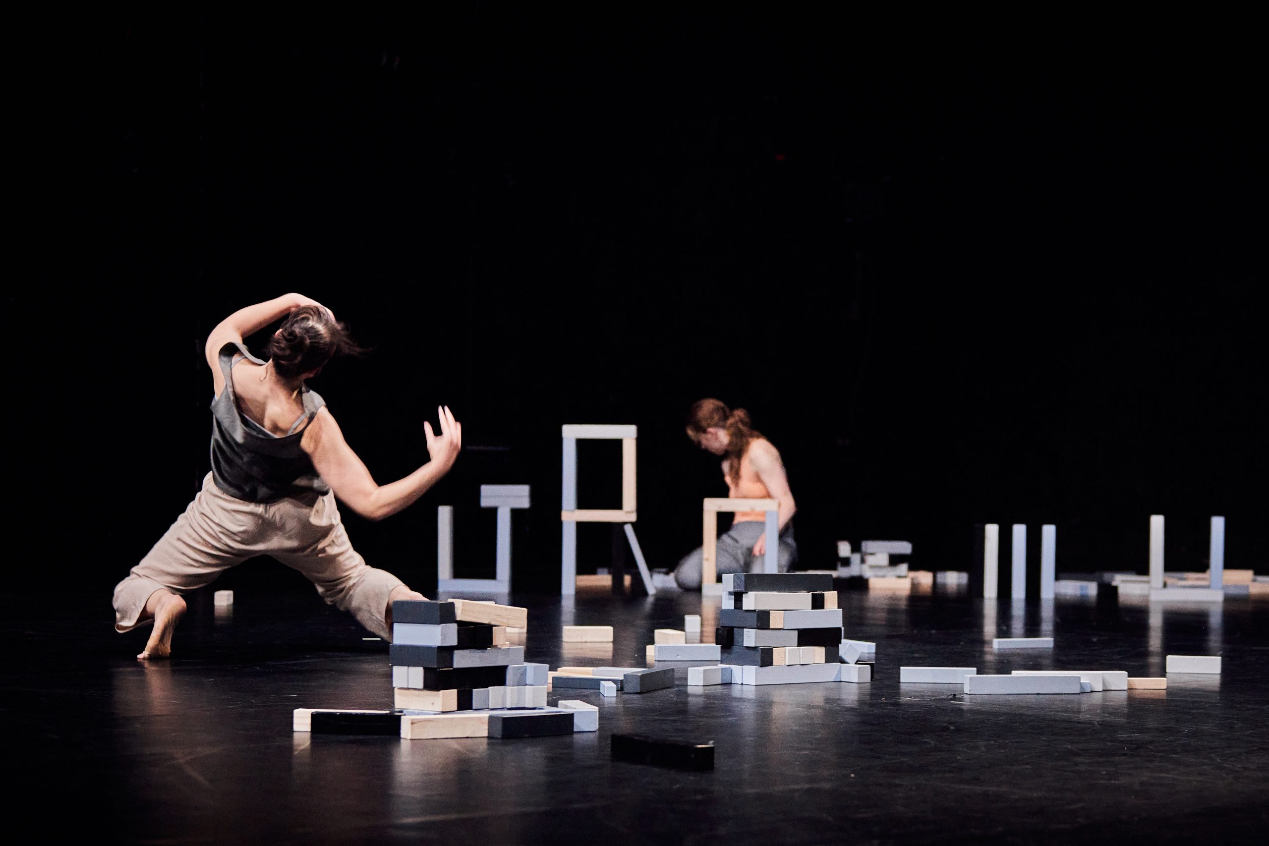 In Body that Stands untersucht Smadar Goshen Widerstand aus der Perspektive der Resilienz. Auf einer Bühne, die mit Hunderten von Holzklötzen ausgelegt ist, bewegen sich die Tänzer in einem kontinuierlichen Kreislauf aus Zerstörung und Aufbau, erkunden eine Reihe von Reaktionen auf Konfrontationen mit gegensätzlichen Kräften und üben einfache Akte physischen Widerstands aus – gegeneinander und gegen den Raum selbst.